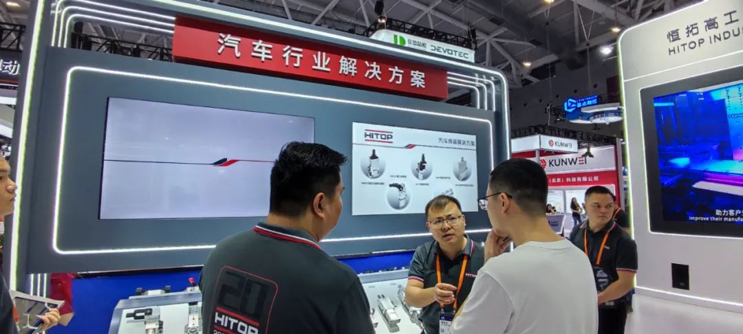 展会期间比亚迪,富士康,JABIL蓝思科技大族激光CATL等3C&新能源行业专业人士莅临HITOP展位,了解了HITOP的重点行业解决方案,分别有3C行业解决方案的总线阀岛/节能真空及水处理元件,新能源行业解决方案的注液阀/高精度重载手指,汽车行业解决方案的容差夹紧缸/车架夹紧缸等重点产品,针对客户提出的产品相关的疑问,由现场专业技术团队进行现场答疑,并得到客户的高度认可!